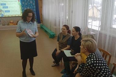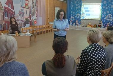 В детском саду прошли мероприятия для педагогов «Профилактика детского дорожно-транспортного травматизма» с участием инспектора по пропаганде БДД ОГИБДД Осиповой Л.С. (ул. Володарского, 39; ул. Ленина, 5). На семинаре-практикуме педагоги повторили современные игровые приемы работы с детьми по изучению правил дорожного движения (старший воспитатель Кочакова Елена Александровна).