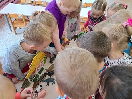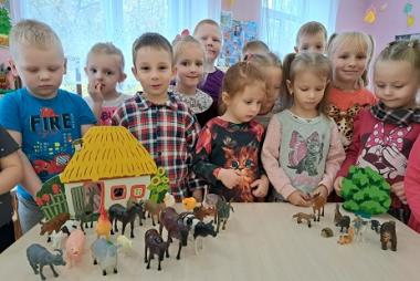 В группе раннего возраста " Яблочко" малыши с воспитателем Тимофеевой Зоей Сергеевной рассматривали картинки с домашними и дикими животными, говорили кто как говорит, играли с фигурами диких животных.