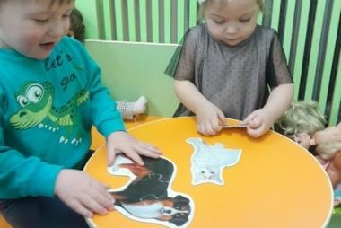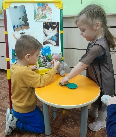 Дети первой младшей группы "Пчелки" (ул. Красноармейская, 26А) вместе с воспитателем Шишкаревой Мариной Васильевной собрали увлекательные пазлы с изображением пушистых друзей. С большим интересом дети подобрали "корм" для кошки и котенка и "накормили" их. Ловкость и командный дух проявили в подвижной игре "Кошки-мышки".