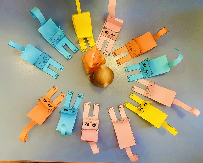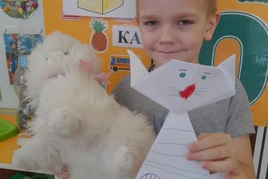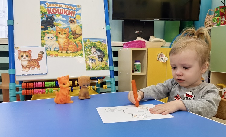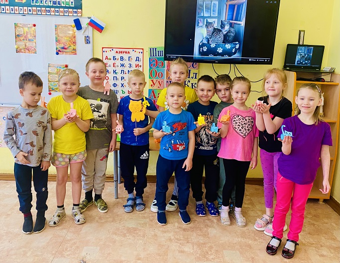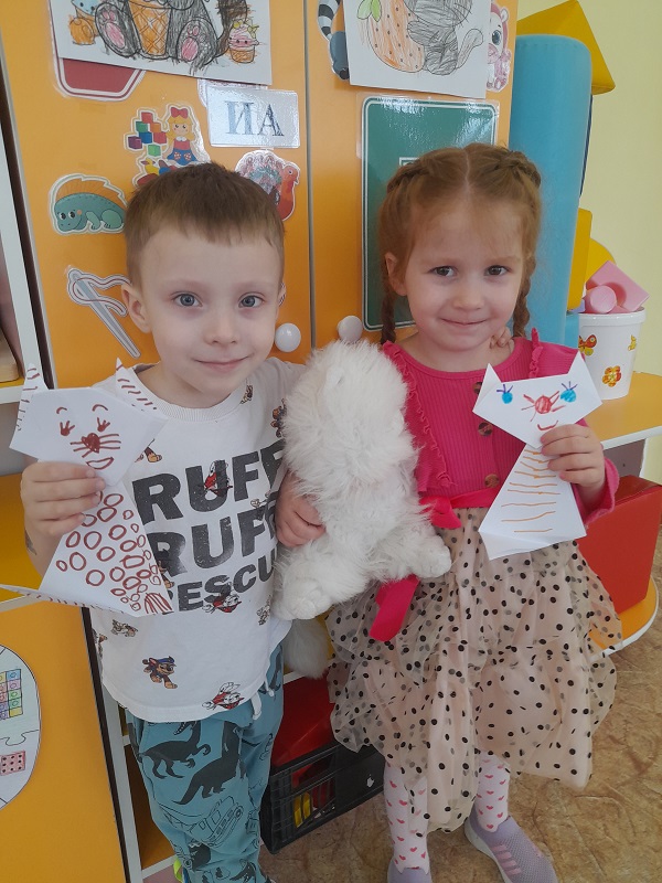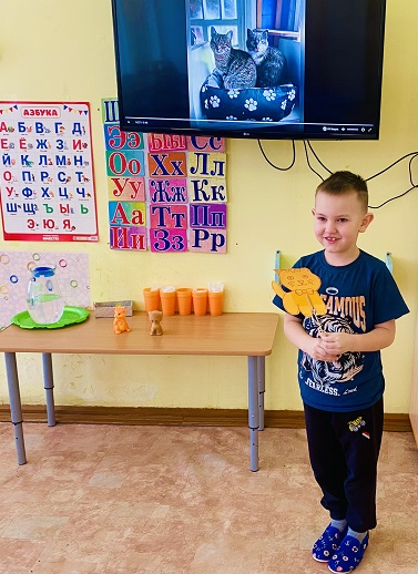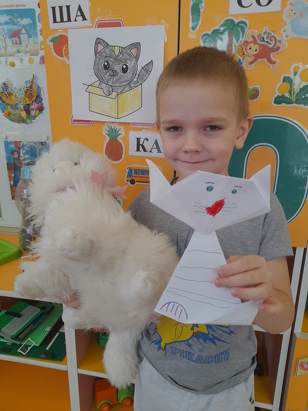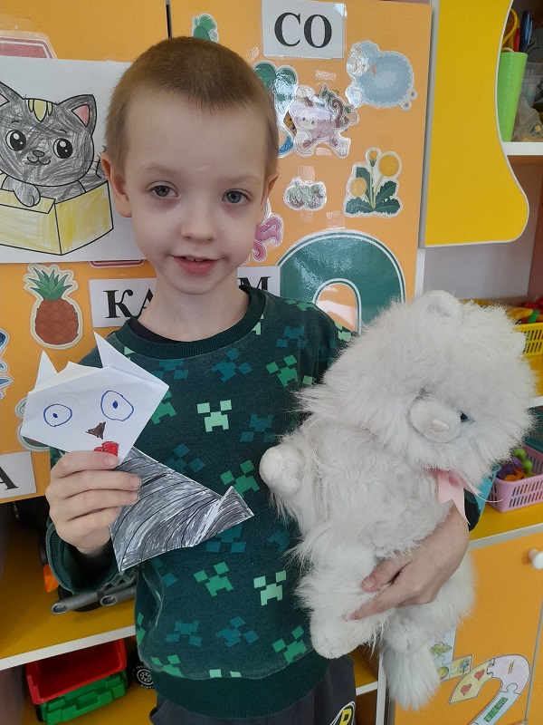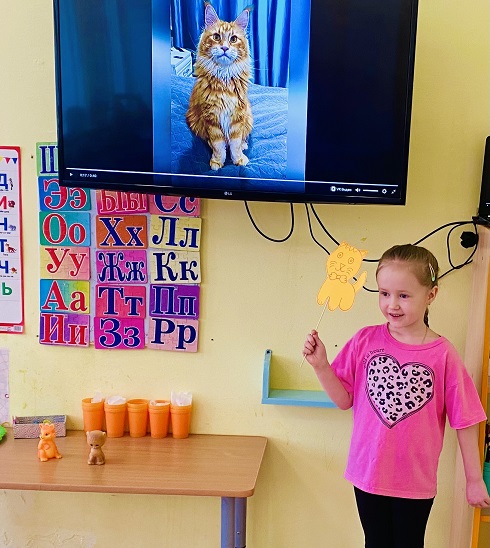 В подготовительной группе «Радуга» (ул. Ленина, 5) воспитатель Загорская Мария Николаевна предложила детям познакомить сверстников со своими домашними питомцами. Дошколята с радостью рассказывали о повадках и шалостях, своих меньших друзей. Забота о животных, формирует ответственность и бережное отношение к живому миру природы! Милые пушистики не смогли оставить ребят равнодушными. Вместе переживали и смеялись над расцарапанными диванами, огорчались, если котик не ручной и долго гуляет сам по себе, восхищались грацией и красотой кошек. Выяснили, что у двоих ребят котики одной породы. В заключение каждый сделал яркого котенка из бумаги, чтобы передать эмоции от увиденного и услышанного на этом занятии.