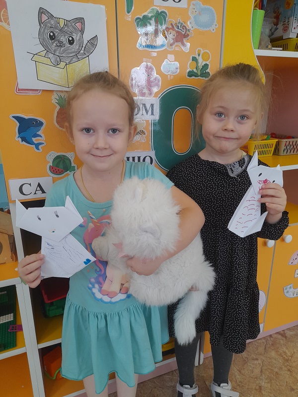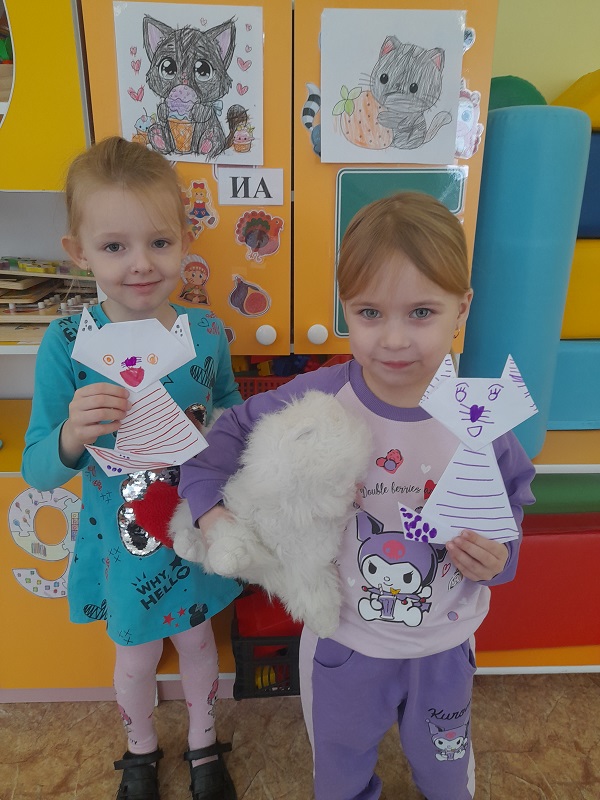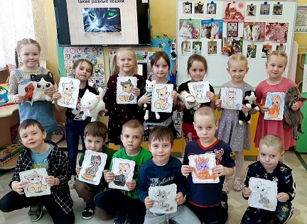 В старшей группе «Ромашка» (ул. Володарского, 39) в гости к ребятам приходила кошка Мурка, которая рассказала о своих братьях (воспитатель Коваленко Жанна Сергеевна). Ребята с огромным удовольствием рассказали гостье о своих четвероногих питомцах, раскрасили «кошечек» и придумали им имена. Ребята получили заряд позитивного настроения на весь день. Заботу, верность, преданность, дружбу и любовь – дает человеку кошка.