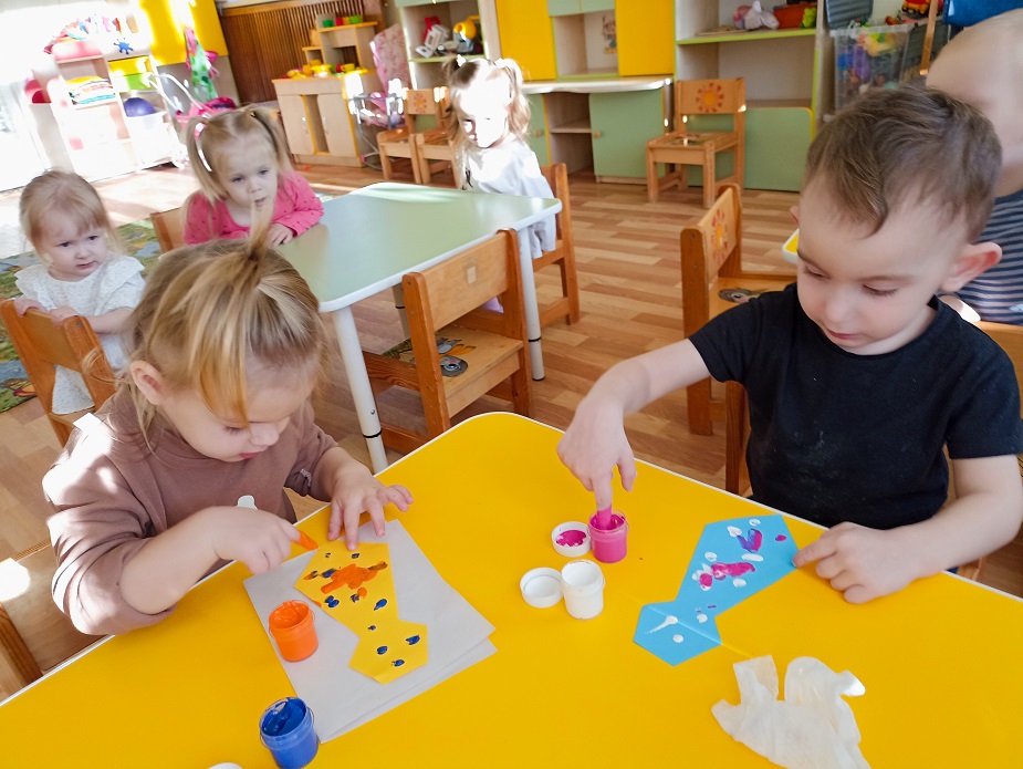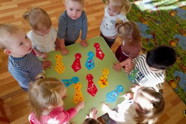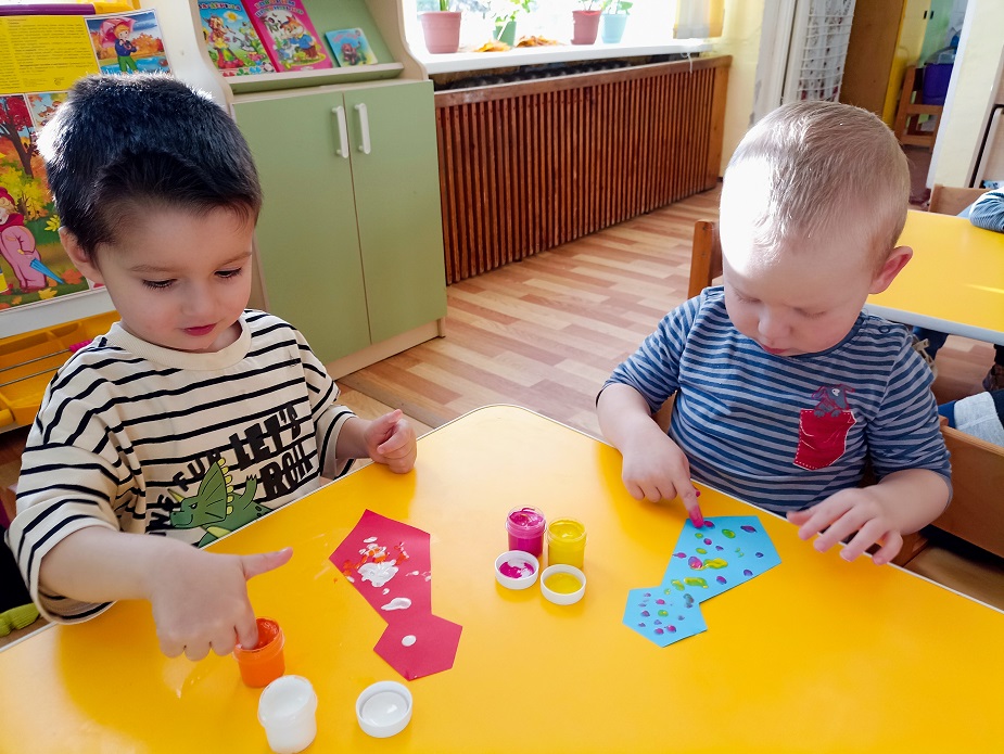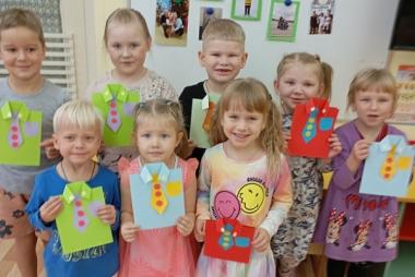 Малыши первой младшей группы "Одуванчик" с воспитателем Борисовой Ириной Викторовной изготовили для пап красивые поделки - яркие галстуки.