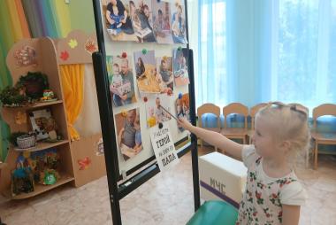 В старшей группе " Почемучки " (воспитатель Морозова Оксана Николаевна) прошло познавательное занятие "Наши папы". Дети отгадывали загадки про пап, называли ласково по имени папу, поиграли с мячом в игры " Что умеет папа делать? ", " Где папа работает? ", "Какой папа?" Ребята принесли фотографии пап и с интересом рассказывали про них. А ещё дети приготовили папам подарочки.