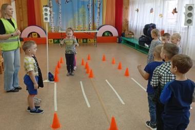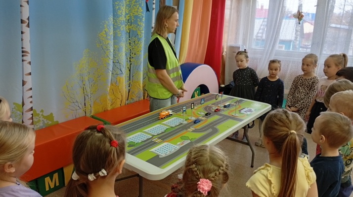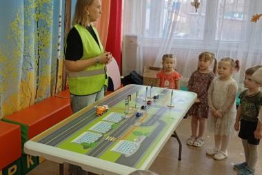 Воспитанники старших групп "Ромашка", "Почемучки" и подготовительных групп "Рябинка" и "Затейники" закрепили части дороги: проезжая часть, обочина, тротуар; правила для пешеходов и пассажиров, правила безопасного перехода проезжей части дороги на увлекательном занятии, которое провела руководитель Центра профилактики детского дорожного транспортного травматизма Яковлева Екатерина Александровна. Благодаря мобильному комплексу "Лаборатория безопасности" дети в игровой форме, в активной игре закрепили правила дорожного движения.