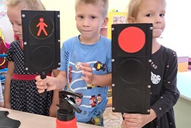 Ребята старшей группы "Почемучки" с воспитателем Пяркиевой Натальей Николаевной отправились в познавательное путешествие по городу Безопасности. Закрепили сигналы светофора и правила перехода дороги.