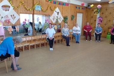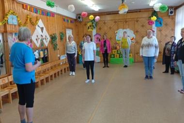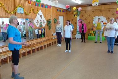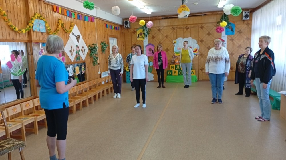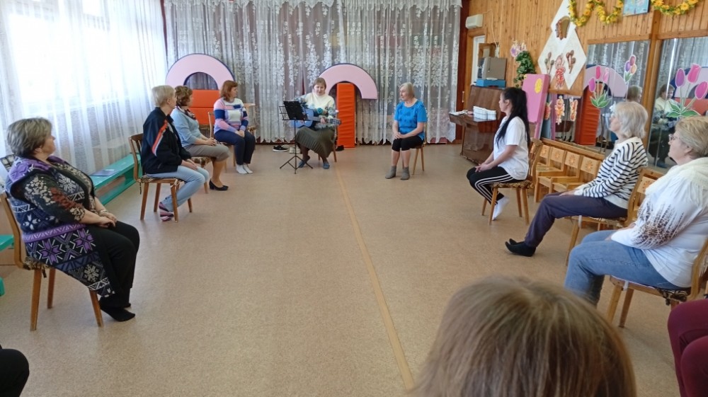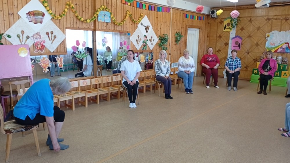 Упражнения Дня здоровья были направлены на развитие дыхания, здоровья позвоночника, стопы и кисти рук. После каждого блока упражнения Ксения Васильевна исполняла позитивные песни под гитару.