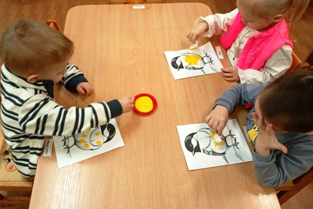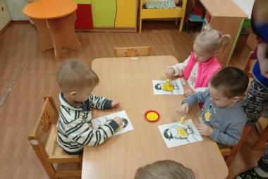 Во второй младшей группе "Гномики" прошёл тематический день "Зимующие птицы" (воспитатель Яковлева Евгения Геннадьевна). Дети с большим удовольствием разгадывали загадки про птиц, слушали их голоса, подрожали им, Ребята рассмотрели картинки птиц нашего края и слушали о них рассказы. Ребята узнали о том, как мы можем помочь пернатым зимой, вспомнили, их любимые лакомства. В завершении занятия дети раскрасили грудки синичкам.