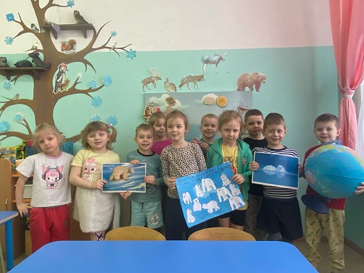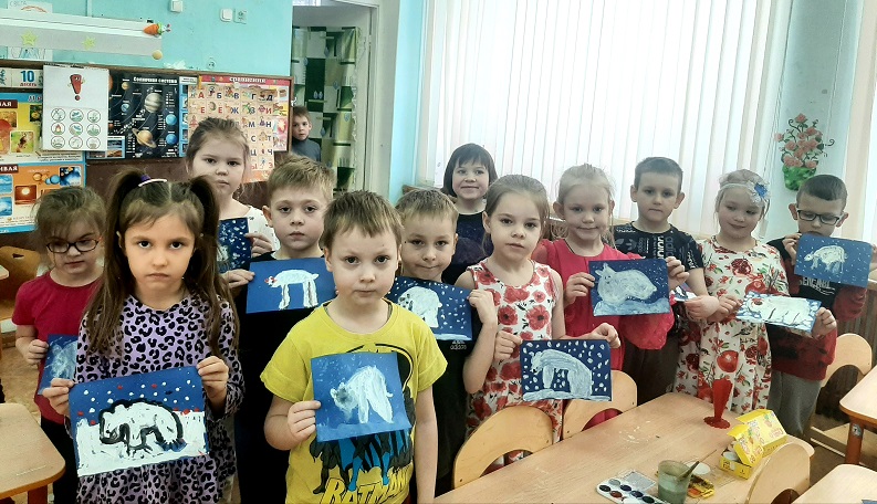 Дети подготовительной группы "Непоседы" (ул. Красноармейская, 26А) с воспитателем Тихоновой Ольгой Николаевной поговорили о среде обитания белых медведей,узнали, какими повадками они обладают,чем питаются и какое отличие имеют от бурых медведей. Ребята нарисовали рисунки с изображением этих красивых животных!