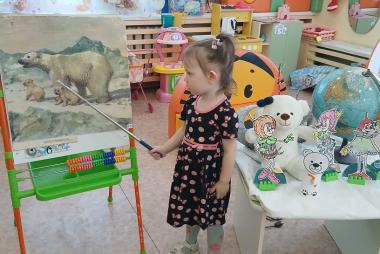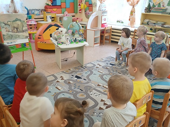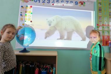 На познавательном занятии ребята средней группы "Семицветик" с воспитателем Горячевой Анжелой Анатольевной рассмотрели картинки, как выглядит полярный медведь, узнали, где живёт, чем питается, как охотится. Послушали историю "От чего у белого медведя чёрный нос?". Вели разговор о защите белых медведей!Проявили художественный интерес- раскрасили рисунки по теме: " Снежное царство белого медведя ".