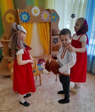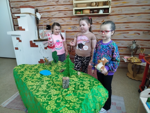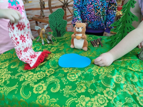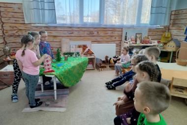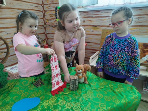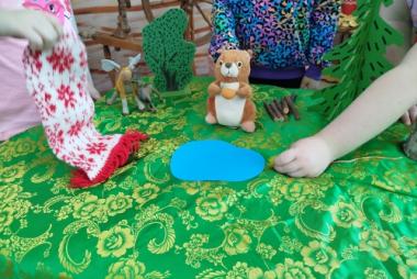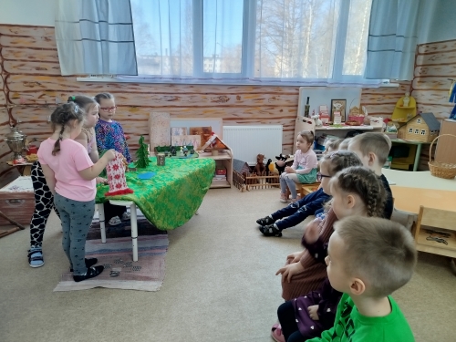 Актеры настольного театра старшей группы "Ягодки" (ул. Урицкого, 30А) с воспитателем Кекшоевой Тамарой Ивановной устроили театральный показ карельской сказки "Белка, рукавица и иголка". В карельской горнице зрители погрузились в сказочную атмосферу карельского леса, внимательно следили за развитием сюжета и аплодировали актерам.