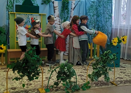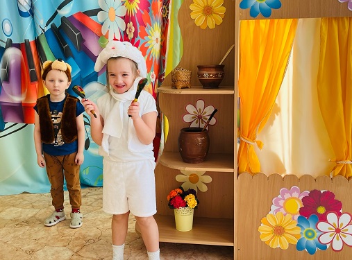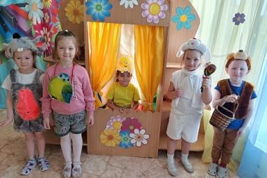 В рамках театральной недели ребята средней группы «Лучики» (ул. Красноармейская, 16) вместе с воспитателем Тарасовой Марией Ивановной показали детям из других групп русскую народную сказку «Колобок». Юные артисты с большим интересом участвовали в представлении, старались выразительно передавать характеры героев и подарили зрителям хорошее настроение. Также дети играли в настольный театр, с удовольствием перевоплощались в персонажей сказки и развивали речь, воображение и артистические способности. Мероприятия прошли интересно, весело и очень увлекательно!