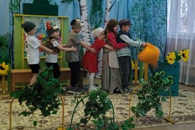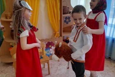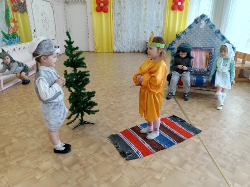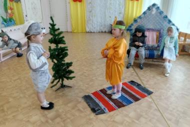 Дети средней группы "Семицветик" (ул. Красноармейская, 26А) под руководством воспитателя Борисовой Ирины Викторовны показала эскимосскую народную сказку "Как лисичка бычка обидела".
