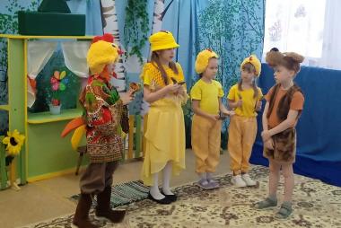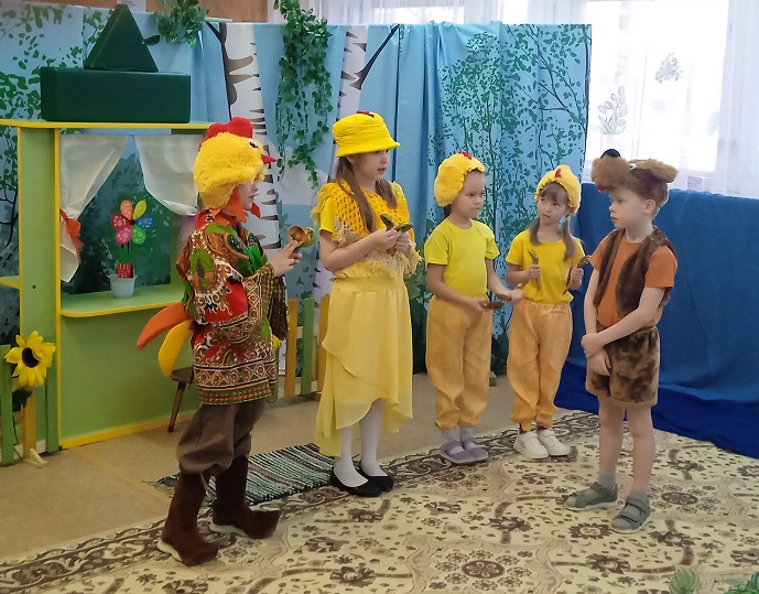 Подготовительная группа «Рябинка»(ул. Володарского, 39)под руководством воспитателя Лекандер Светланы Александровны на фестивале детского творчества «Театральная весна» показала русскую народную сказку «Кот, петух и лиса». Дети выступили как настоящие артисты, здорово перевоплотились в образы своих героев, умело использовали пластику движений, выразительную речь.