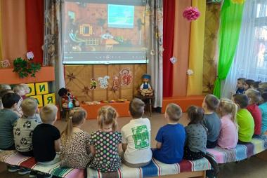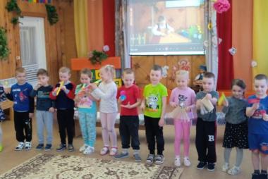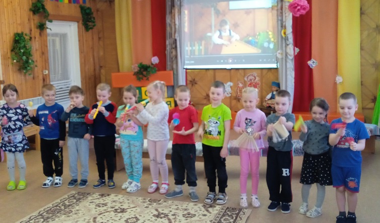 Дети групп «Почемучки», «Ромашка», «Рябинка» (ул. Володарского, 39) вспомнили и закрепили знание народных музыкальных инструментов. Музыкальный руководитель Надежда Николаевна Плинкоева рассказала о кантеле, на экране дети услышали звучание кантеле. Рассмотрев музыкальные инструменты,все стали участниками оркестра. Дети бережно и прекрасно исполнили звучание каждого инструмента. Закончилось мероприятие общим танцем .