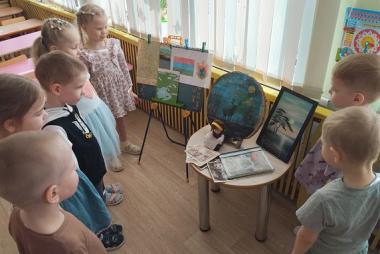 Детей средней группы "Семицветик" (ул. Красноармейская, 26А) воспитатель горячева Анжела Анатольевна познакомила с символами Карелии и красотой природы. Называли, какие звери живут в Карельском лесу. Играли в игру "Сеть да рыба", называли какая рыба водится в реках и озёрах Карелии. Рисовали по теме"Красивая Карелия".