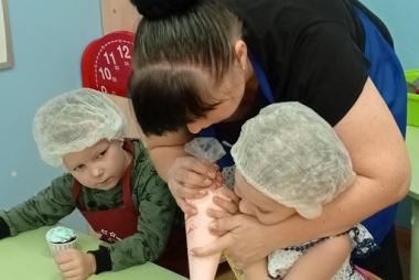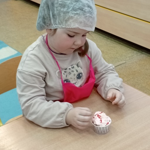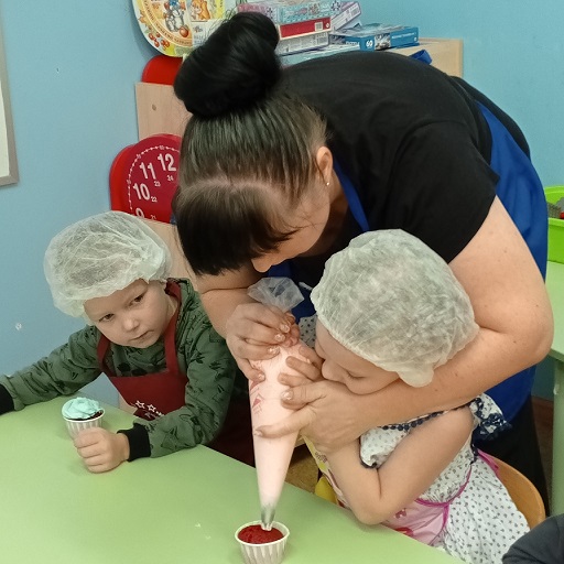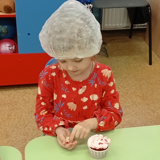 В рамках проекта " Мир профессий " в старшей группе Д "Ягодки" (воспитатель Арефьева Надежда Сергеевна) была организована встреча с Мариной Владимировной Токаревой. Она познакомила ребят с профессией кондитер. Кондитер - это человек, который готовит, выпекает, потом украшает пирожные, торты. Для работы кондитеру нужны специальные инструменты : разные формочки, лопатки, кондитерский шприц. Есть и специальная одежда : фартук, колпакили косынка. Марина Владимировна на презентации показала детям много необычных тортов. Затем дети вместе с кондитером наполняли и украшали капкейки кремом и разными присыпками.