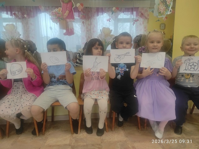 В средней группе «Лучики» (ул. Красноармейская, 16) под руководством воспитателя Тарасовой Марии Ивановны прошёл увлекательный День музыки. В этот день ребята познакомились с различными музыкальными инструментами, узнали, как они звучат, и даже попробовали поиграть на них самостоятельно. Дети с большим интересом слушали звуки инструментов, сравнивали их и делились своими впечатлениями. Особенно радостным моментом стало творческое задание — ребята раскрасили свои любимые музыкальные инструменты, передав в рисунках настроение и эмоции, которые подарила им музыка.