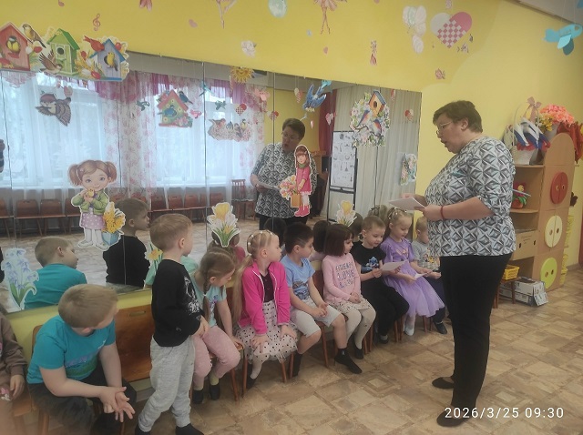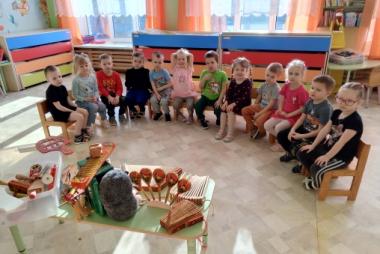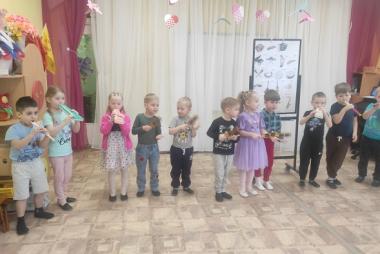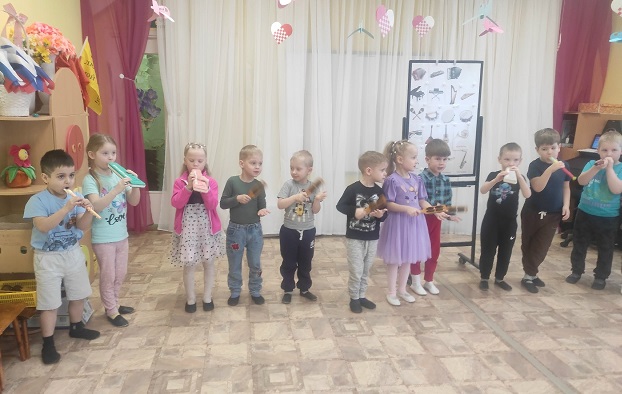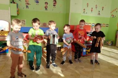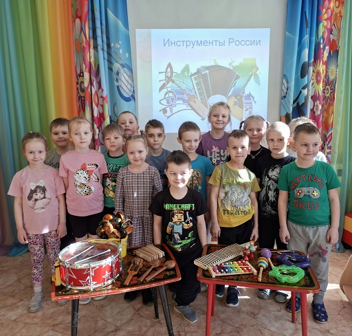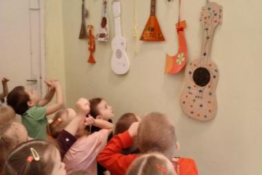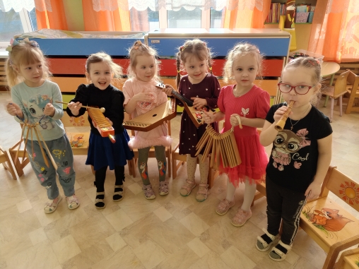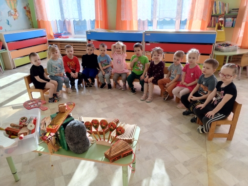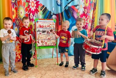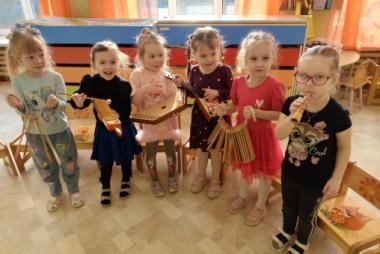 Дети средней группы «Семицветик» (ул. Красноармейская, 26А) отправились в мир народной музыки. Зинаида Николаевна, музыкальный руководитель, рассказала об инструментах, созданных народными умельцами. Рассмотрев различные музыкальные инструменты, отметив их индивидуальность, дети спонтанно создали народный ансамбль. Плавно звучала музыка, навевающая мысли о красоте и чистоте народных песен.
