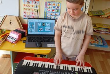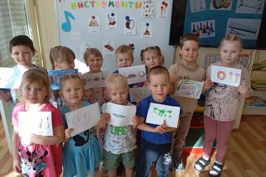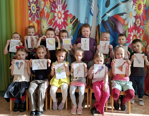 Детей дошкольных групп "Почемучки", "Радуга", "Лучики" (ул. Ленина, 5) музыкальный руководитель Графова Инна Евгеньевна познакомила с различными музыкальными инструментами, с их классификацией. Ребята послушали звучание, играли в оркестре и рисовали. День прошел ярко, музыкально и познавательно. Удивительные рисунки ребят на музыкальной выставке.