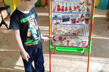 Дети старшей группы "Почемучки" (ул. Володарского, 39) с воспитателем Морозовой Оксаной Николаевной познакомились с музыкальными инструментами, рассмотрели выставку, посмотрели презентацию, узнали, как называются инструменты, как звучат, поиграли с ними. Струнные (скрипка, арфа, контрабас, гитара, балалайка и др.). Духовые (кларнет, саксофон, труба, губная гармошка и др.). Ударные (бубен, металлофон, барабан, и др.). Клавишные (аккордеон, синтезатор, рояль и др.). Каждый нарисовал музыкальный инструмент, который ему понравился больше всего.