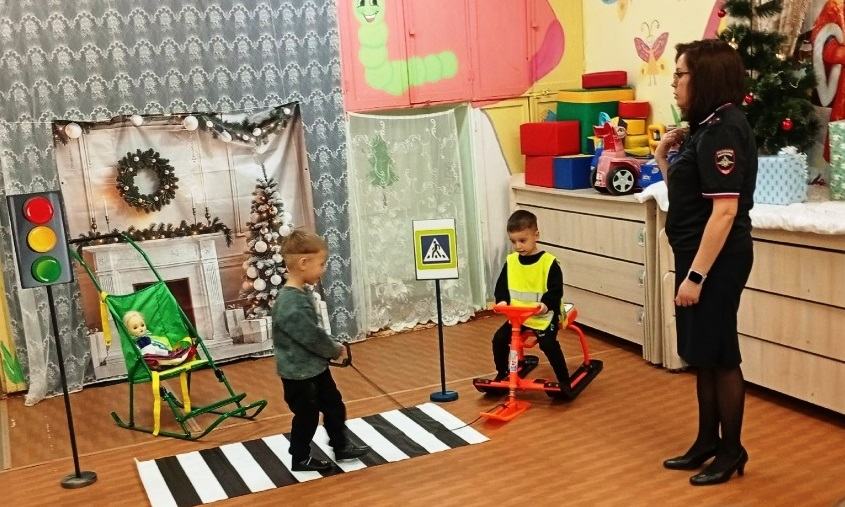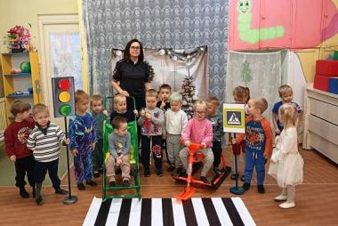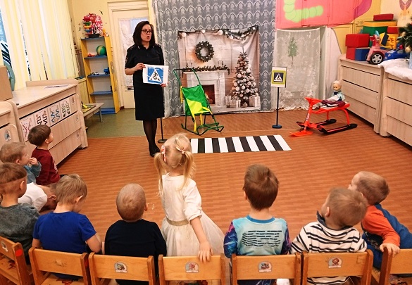 Игровое занятие «Осторожно, дорога!» по безопасности дорожного движения прошло во второй младшей группе «Гномики» (ул. Красноармейская, 26 – воспитатель Яковлева Евгения Геннадьевна) под руководством инспектора по пропаганде БДД Госавтоинспекции Олонецкого района Осиповой Любовь Сергеевны. Дети повторили, как правильно переходить дорогу по пешеходному переходу. Инспектор рекомендовала использовать световозвращающие элементы в зимнее время для безопасности на дороге, когда световой день сокращается, и водителям труднее заметить пешеходов. Любовь Сергеевна напомнила детям сигналы светофора и провела игру «Будь внимателен. Дети повторили дорожные знаки, рассмотрели картинки с различными ситуациями на дорогах и сделали вывод, что играть возле дороги опасно!