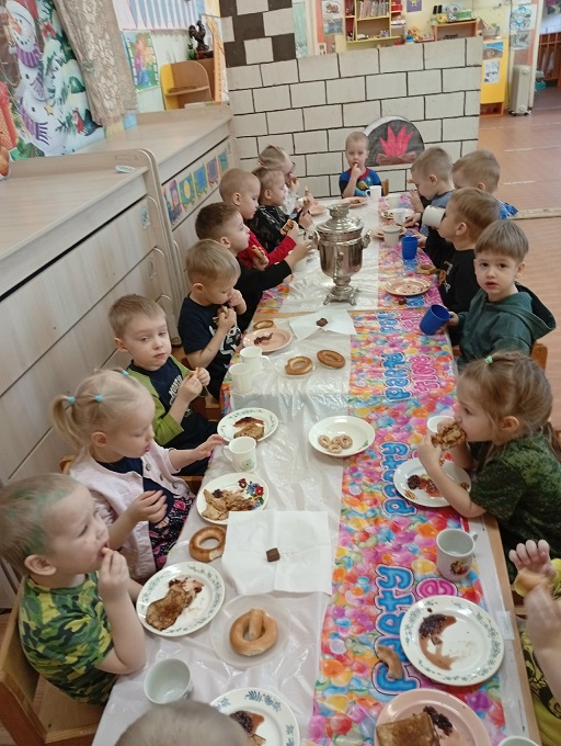 Третий день масленицы называется лакомка. Ребята группы "Затейники" (ул. Володарского, 39) с воспитателем Ананьевой Галиной Васильевной встретили его песнями, хороводами, играми, вкусными блинами с вишнёвым вареньем, ароматным чаем, а ещё с хорошим настроением!