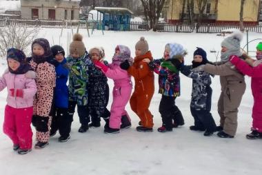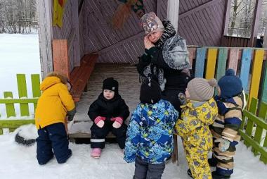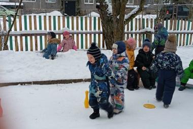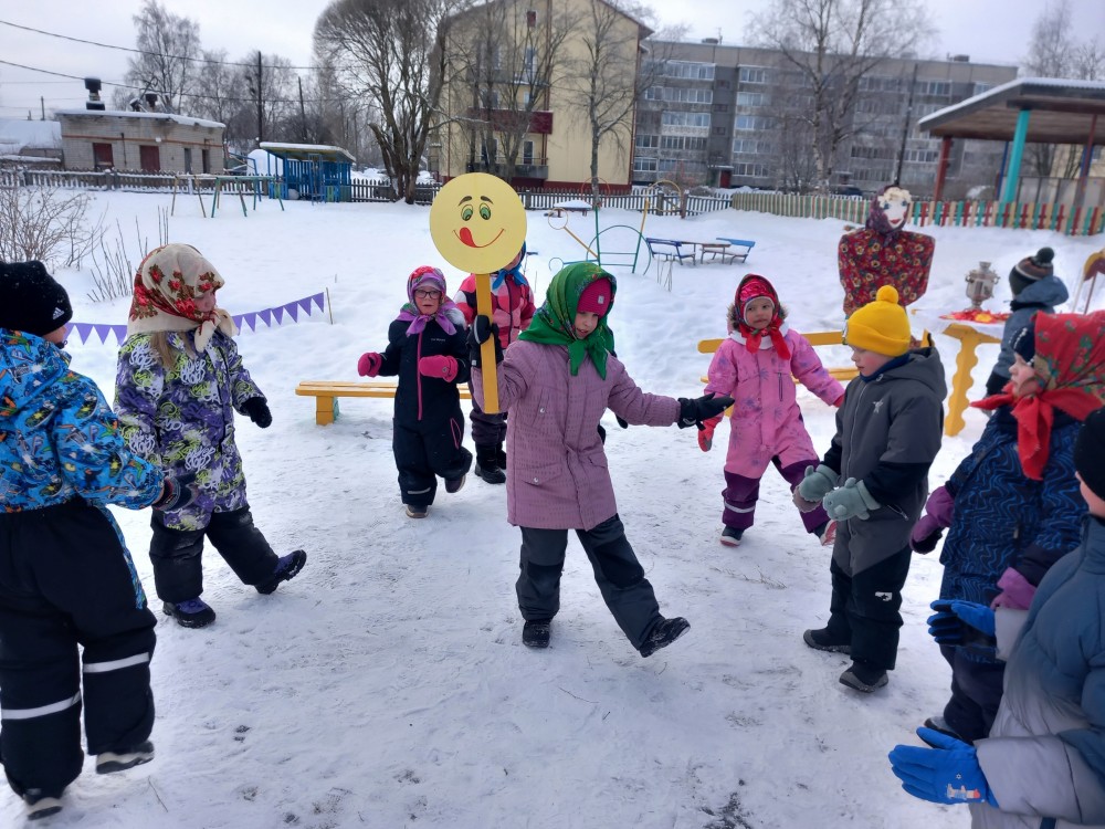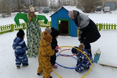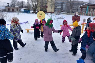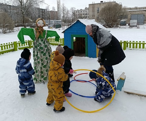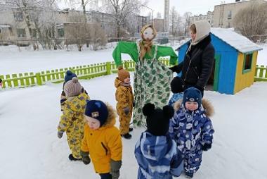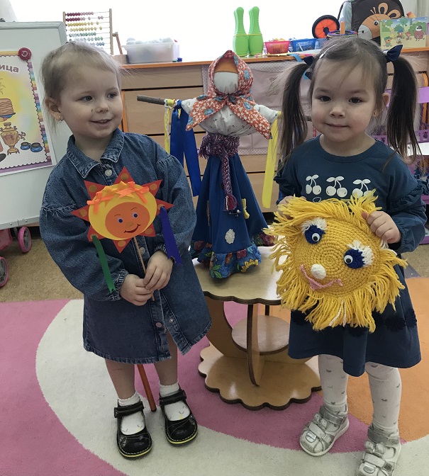 Малышей первой младшей группы «Зернышко» (ул. Урицкого, 30А) воспитатель Логинова Наталья Юрьевна познакомила с главным участником Масленицы — большой куклой по имени Масленица. Узнали, что Масленица — это праздник, когда люди прощаются с зимой и зовут в гости весну и солнышко. Играли, водили хоровод и угощались блинами.