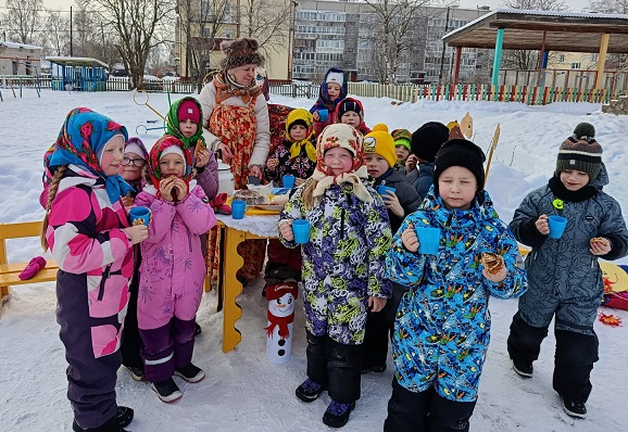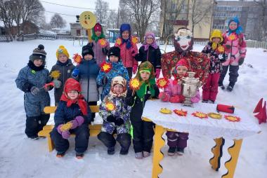 Для детей старших групп "Ромашка" и "Почемучки" (ул. Володарского, 39) прошло развлечение "Широкая Масленица". Шутками и прибаутками детей встречали Матрёшки (воспитатели Андреева Алевтина Анатольевна, Коваленко Жанна Сергеевна). И началось веселье - дети играли в народные игры "Солнцеворот", "Горячий блин", "Масленица". Звучали стихи, частушки, песни, загадки. В завершении праздника все получили Масленичное угощение - блины.