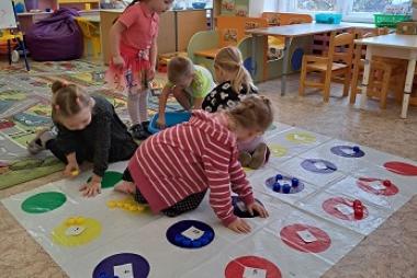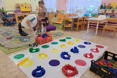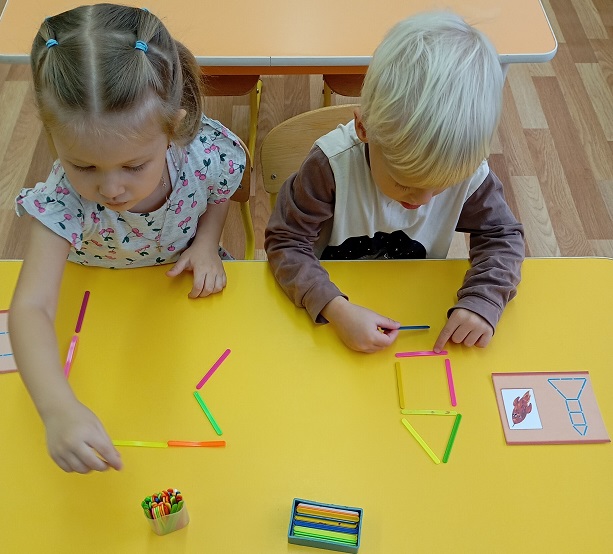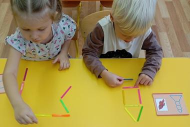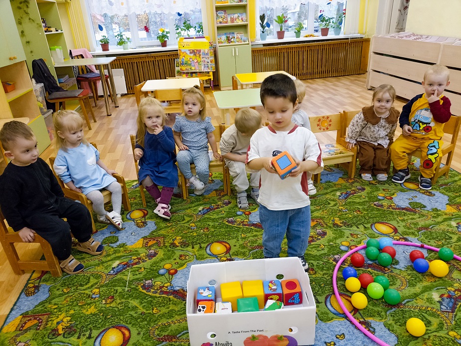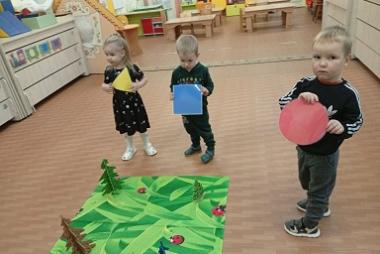 На математическом занятии ребята второй младшей группы "Колокольчик" вместе с воспитателем Кекшоевой Тамарой Ивановной помогали заблудившемуся ёжику добраться до леса. Добавили паровозику колеса, рассказали какой они формы и сколько их, и отправились в путь. На лесной полянке набрали осенних листочков и привезли их в детский сад.