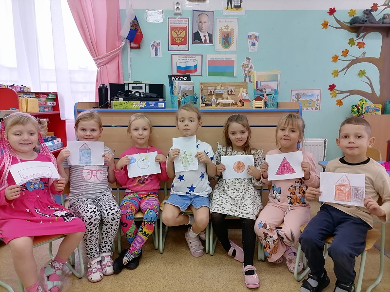 Дети первой младшей группы "Карамельки" с царицей Математики (воспитатель Бодян Лариса Алексеевна), вспомнили знакомые геометрические фигуры: собирали их из частей, из палочек, искали предметы похожие на фигуры. Математика это увлекательно.