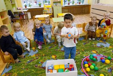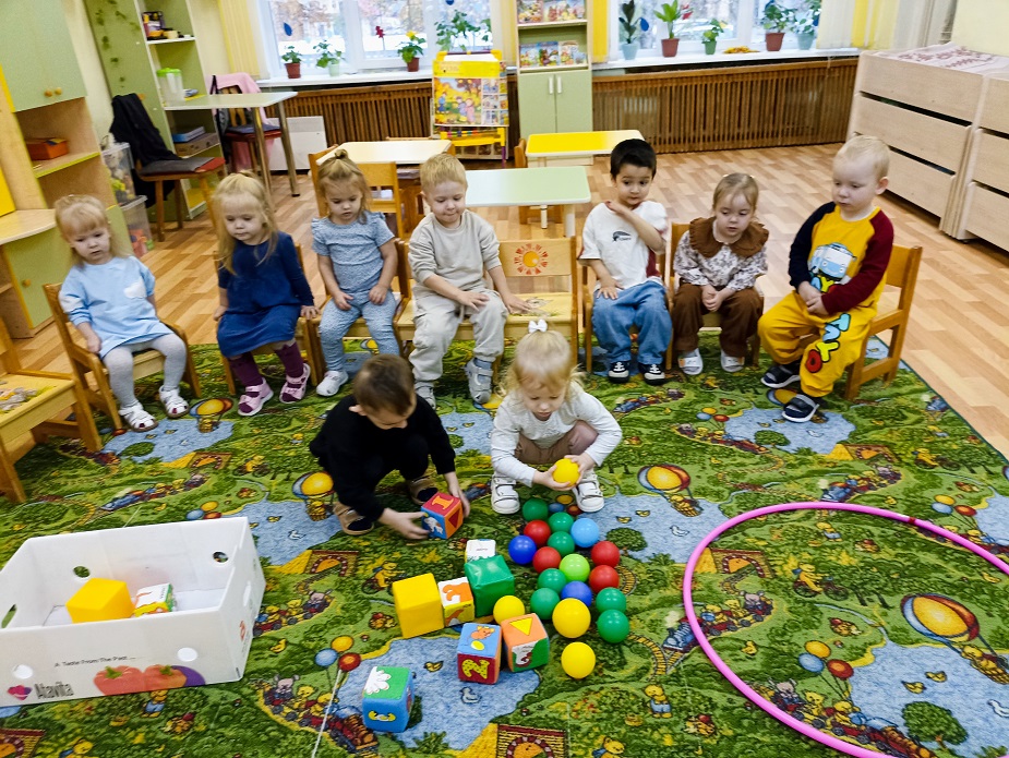 Малыши первой младшей группы "Одуванчик" с воспитателем Борисовой Ириной Викторовной знакомились с формой "шар". Учились называть и производить действия: катать, обводить, бросать.