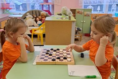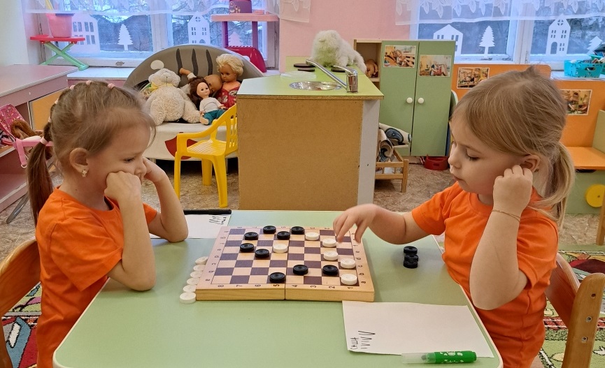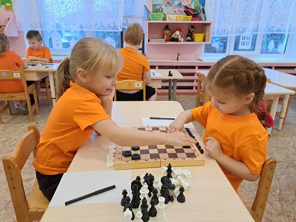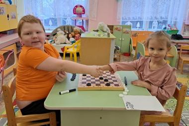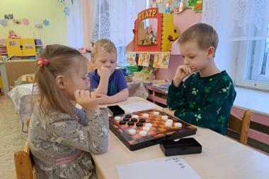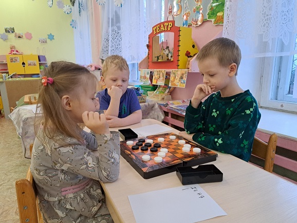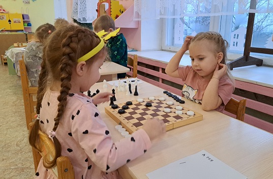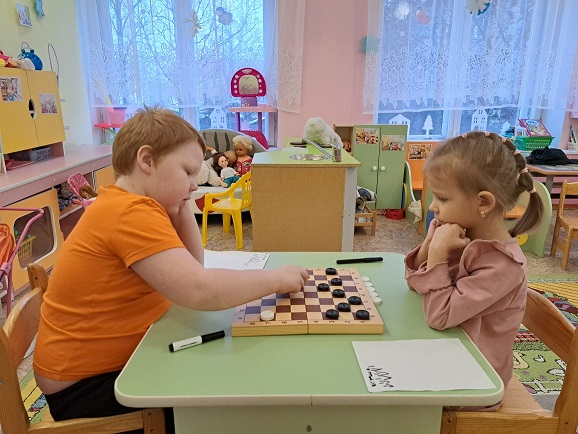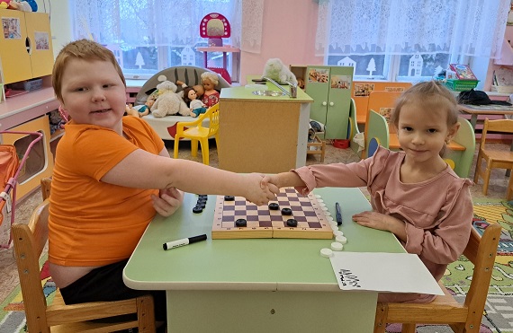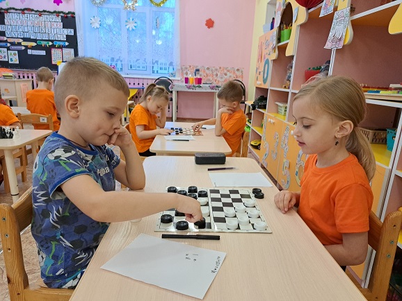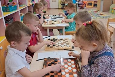 Дети с большим азартом и интересом соревновались в мастерстве игры в шашки.