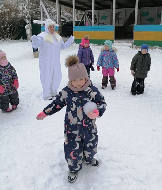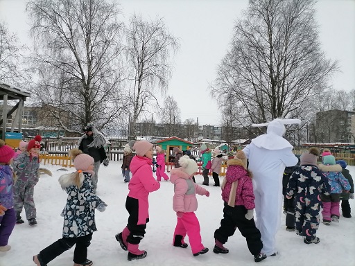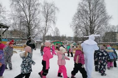 Танцевально-спортивный зимний праздник на участках ул. Урицкого 30а, ул.Красноармейская 26а провели музыкальный руководитель Иванова-Плинкоева Зинаида Николаевна, инструктор по физической культуре Артемьева Елена Юрьевна, воспитатель Иванова Маргарита Ивановна. Дети активно, с удовольствием выполняли движения под музыку, водили хороводы. Сюрпризным моментом стала встреча со сказочными героями - Волком и Зайцем. Дети играли с героями в подвижные игры, передавали "волшебный комок", участвовали во флешмобе. В завершении праздника вместе устроили веселый снежный салют! Праздник зарядил ребят положительными эмоциями, весельем и хорошим настроением!