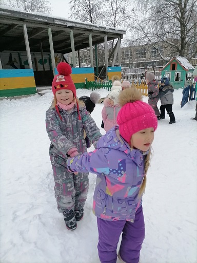 На участке ул. Ленина 5 спортивное развлечение прошло для всех групп, подготовила его инструктор по физической культуре Борисевич Наталья Леонидовна. Дети с удовольствием соревновались, играли, катались на лыжах, на ватрушках. Все получили положительные эмоции от общения друг с другом.