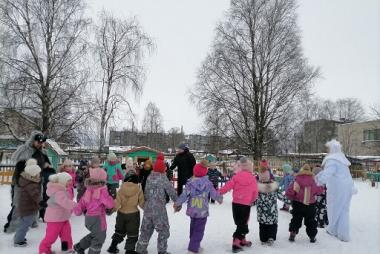 На участке ул. Красноармейская, 16 праздник подготовили инструктор по физической культуре Андреева Мария Ивановна и музыкальный руководитель Дмитриева Ирина Борисовна. После музыкальной разминки дети играли в зимние игры, танцевали, участвовали в эстафетах "Провези игрушку на санках", "Хоккей", "Лыжные гонки", "Кто дальше бросит валенок", "Меткие стрелки". Дети проявили физические качества в игровых ситуациях, получили заряд бодрости и веселого настроения.
